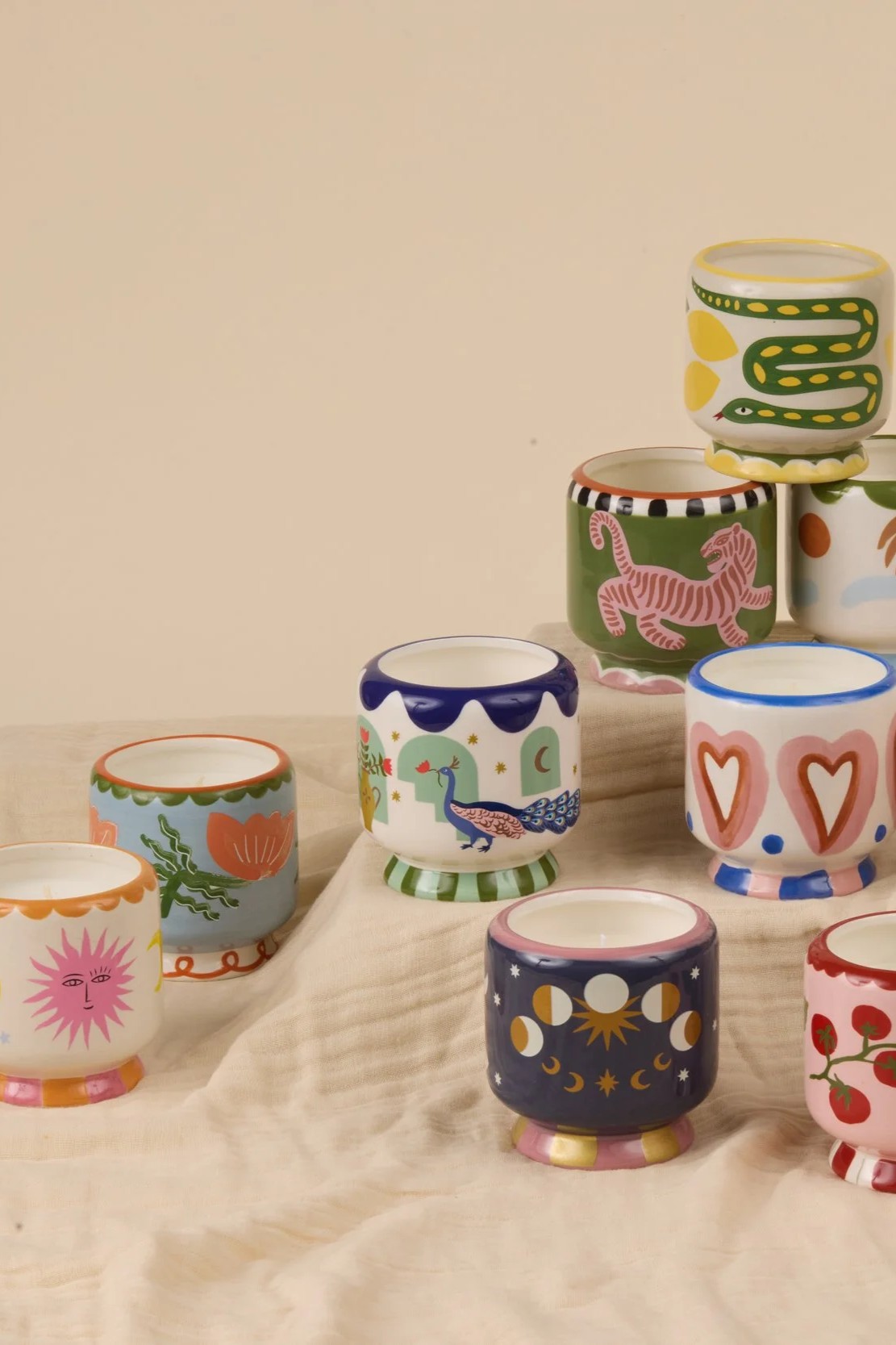 Des bougies en céramique de 8 oz/226 g avec des détails peints à la main ont été remplies de parfums audacieux pour correspondre au design imaginatif et éveiller vos sens.